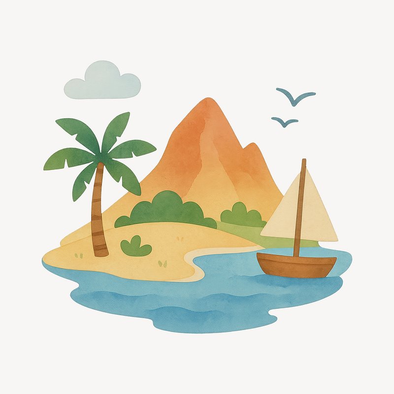 Tropical island paradise illustration. https://www.rawpixel.com/image/19309560/tropical-island-paradise-illustrationView license