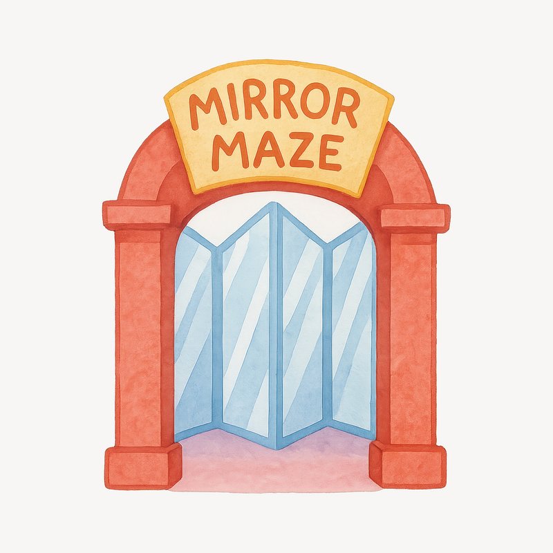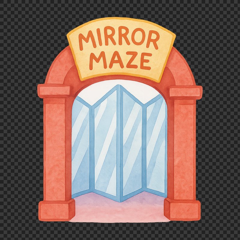 Colorful mirror maze entrance illustration. https://www.rawpixel.com/image/20664363/colorful-mirror-maze-entrance-illustrationView license