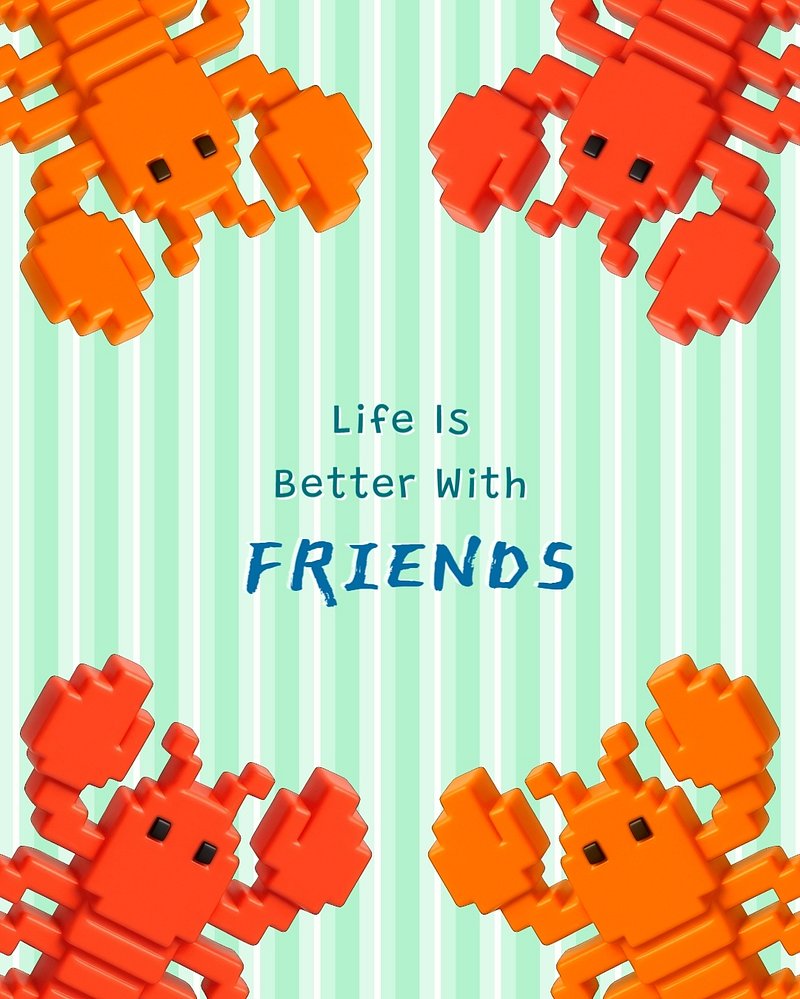 Colorful toy lobsters on a striped background. Bright orange and red lobsters frame the image. Text reads 'Life is Better… https://www.rawpixel.com/image/18305210/image-background-png-transparentView license