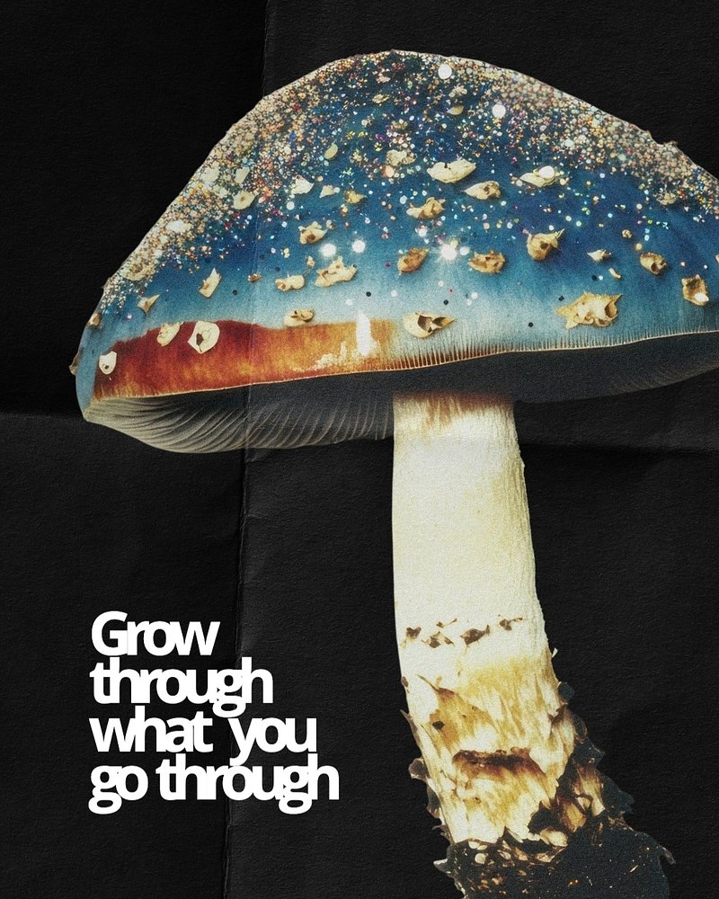 Surreal mushroom art with text. Mushroom design with vibrant colors. Unique mushroom poster with motivational quote.… https://www.rawpixel.com/image/18305375/image-png-transparent-plantView license