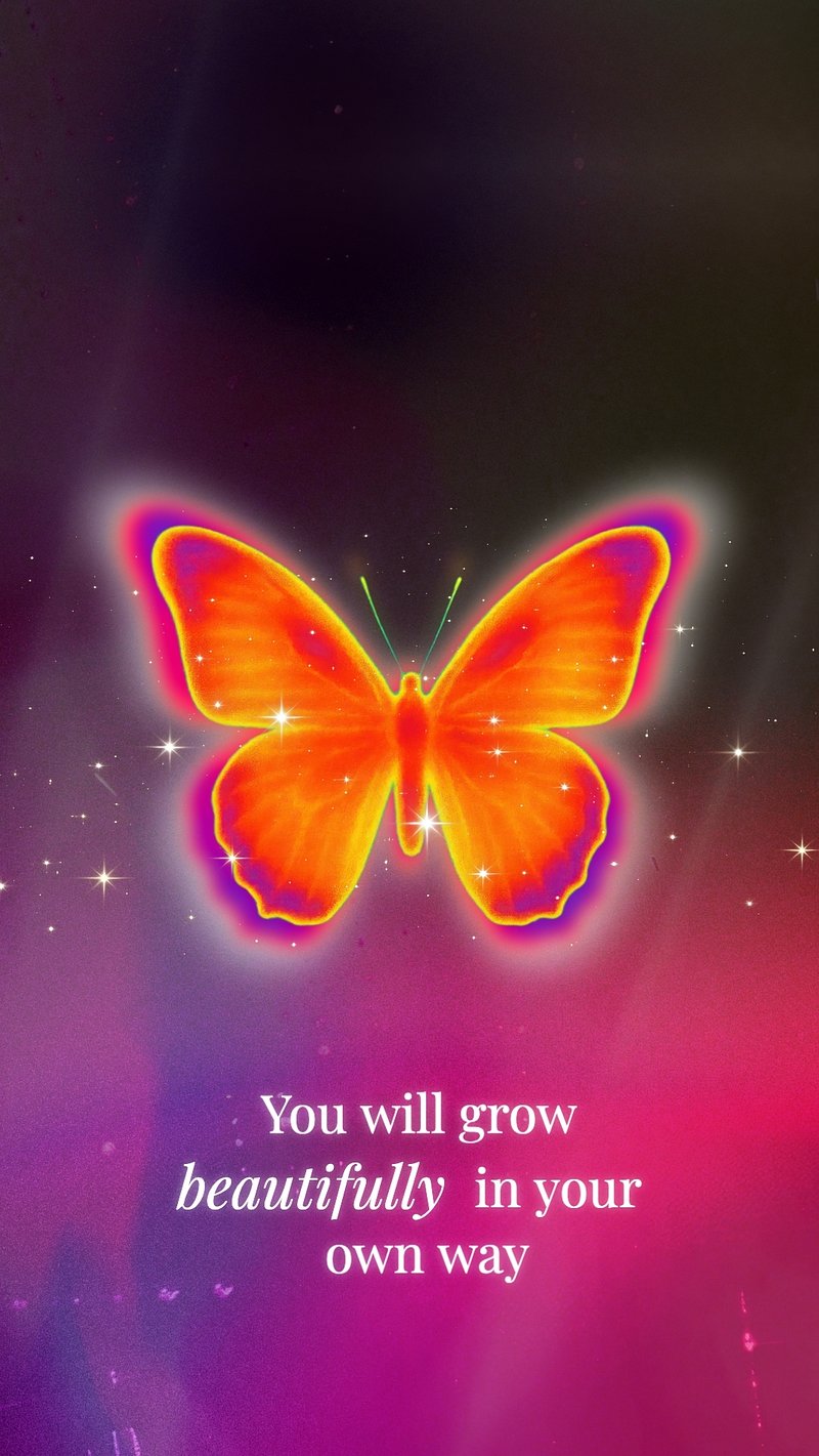 Vibrant butterfly with glowing wings on a colorful background. The butterfly is surrounded by sparkles. Inspiring message:… https://www.rawpixel.com/image/18305388/image-wallpaper-mobile-backgroundView license
