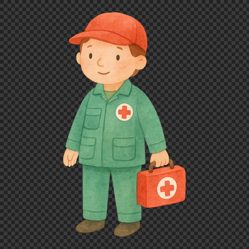PNG Cartoon medic with first aid. https://www.rawpixel.com/image/18764150/png-cartoon-medic-with-first-aidView license