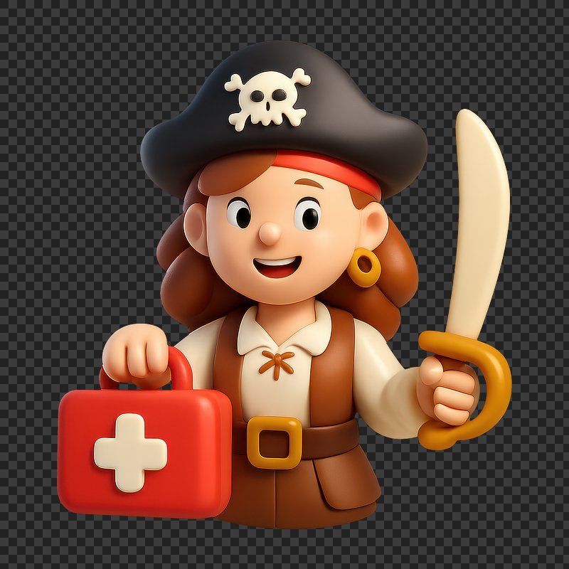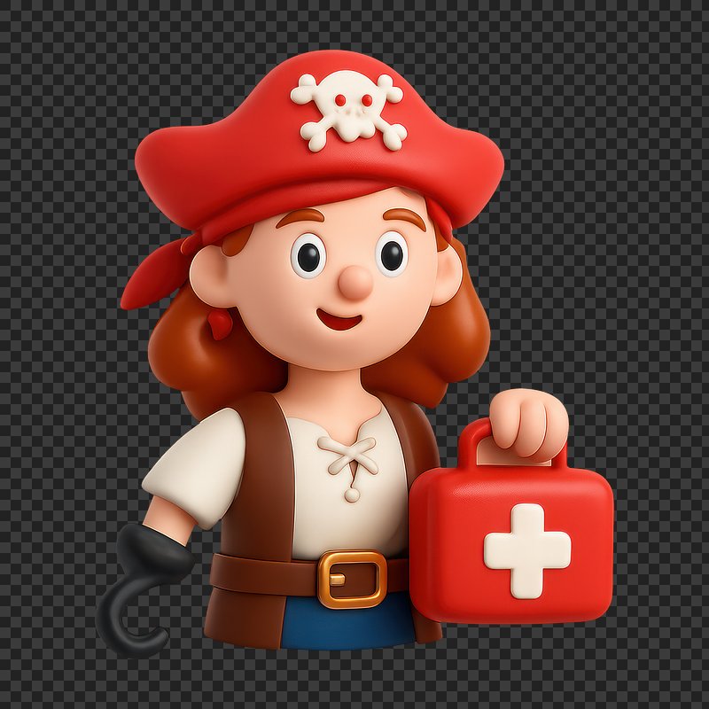 PNG Pirate nurse with first aid. https://www.rawpixel.com/image/19522966/png-pirate-nurse-with-first-aidView license