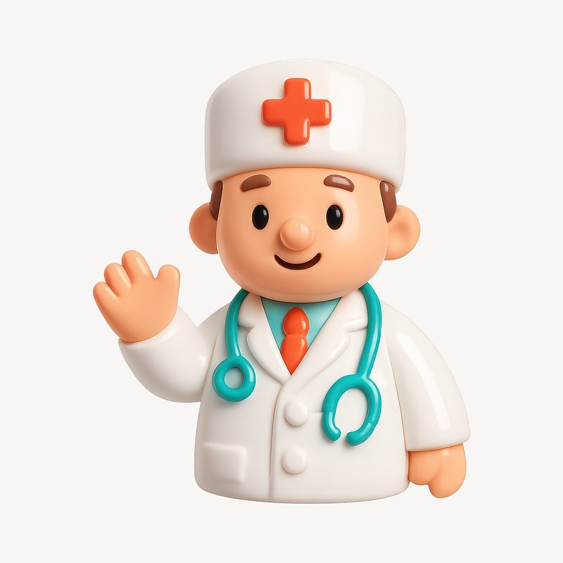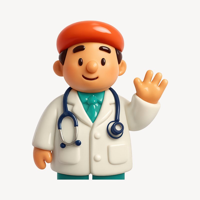 Friendly cartoon doctor figure waving. https://www.rawpixel.com/image/20715530/friendly-cartoon-doctor-figure-wavingView license