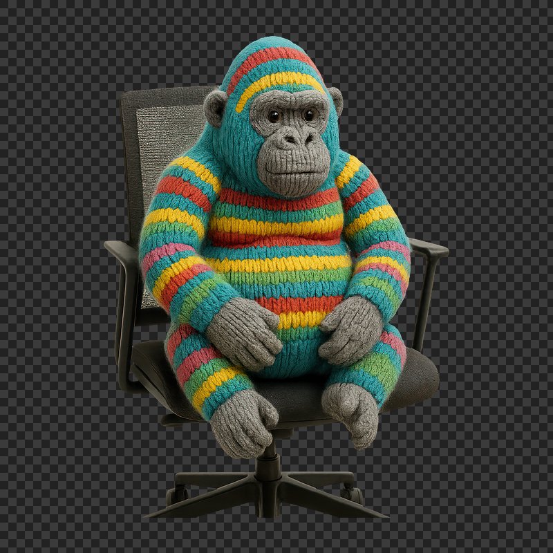 PNG Colorful knitted gorilla chair https://www.rawpixel.com/image/24475027/png-colorful-knitted-gorilla-chairView license