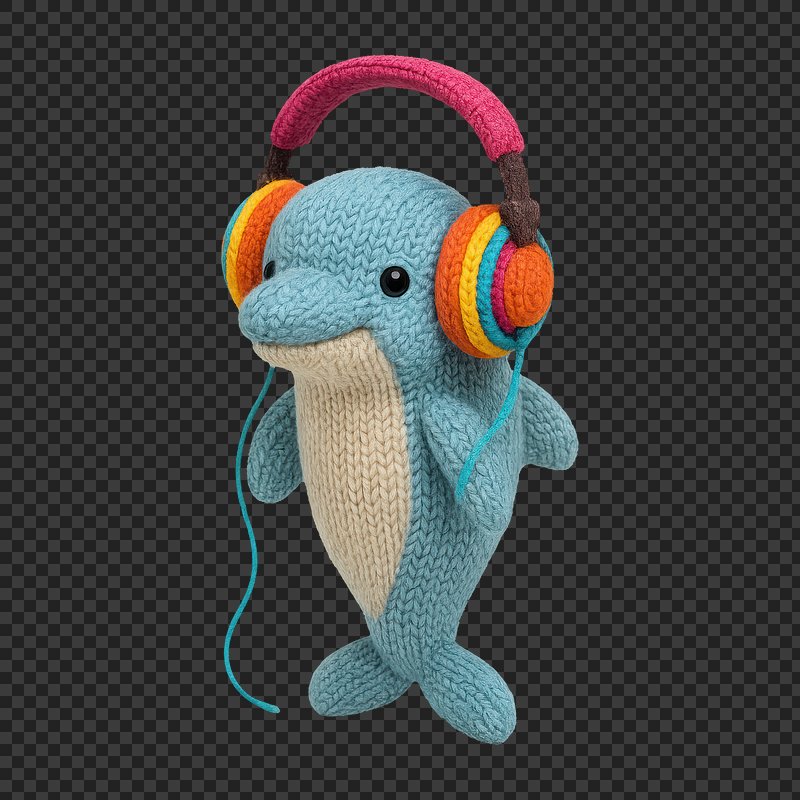 PNG Cute knitted dolphin with headphones. https://www.rawpixel.com/image/24445133/png-cute-knitted-dolphin-with-headphonesView license