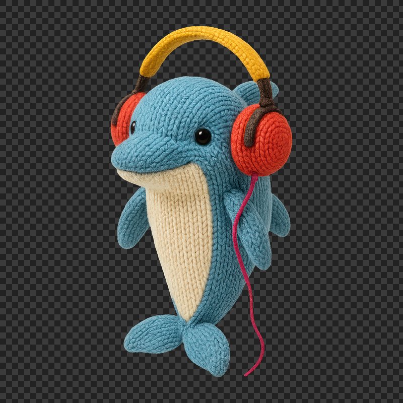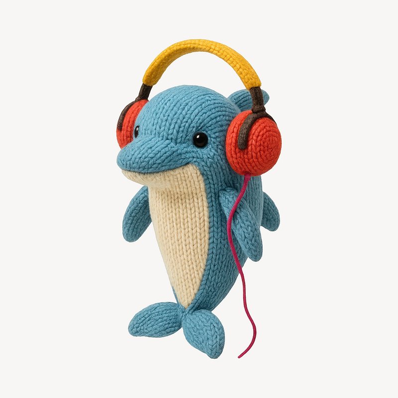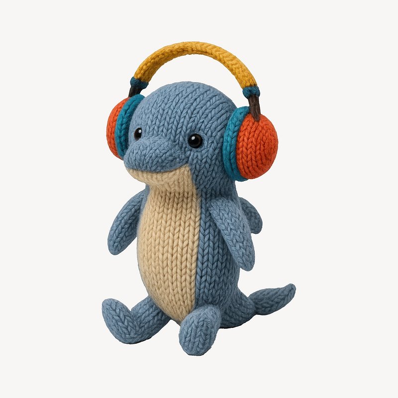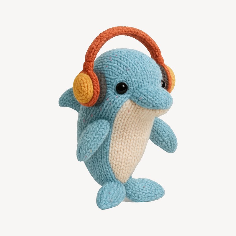 Cute knitted dolphin with headphones. https://www.rawpixel.com/image/24533484/cute-knitted-dolphin-with-headphonesView license