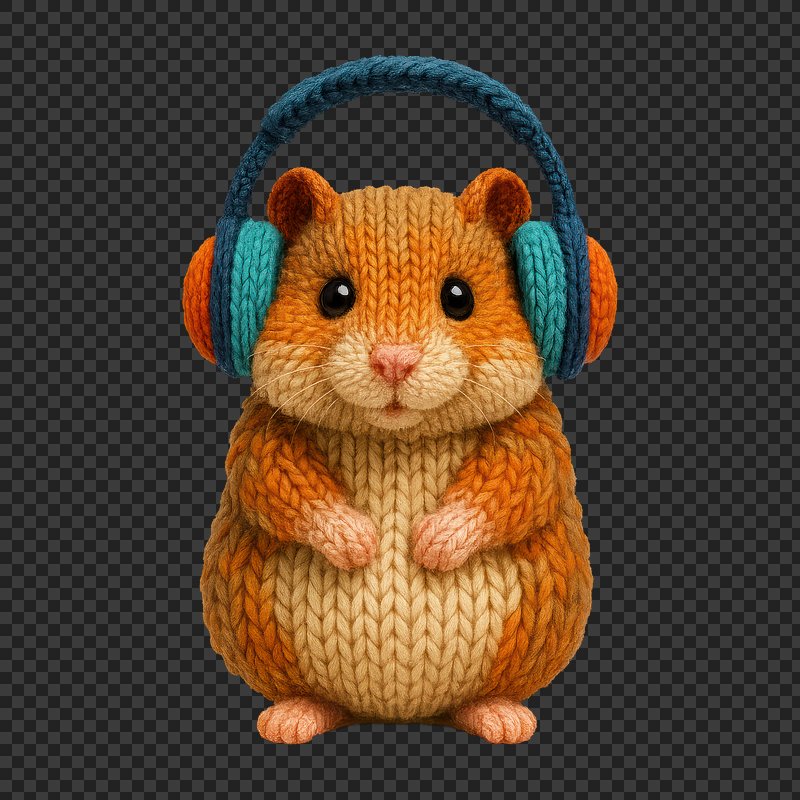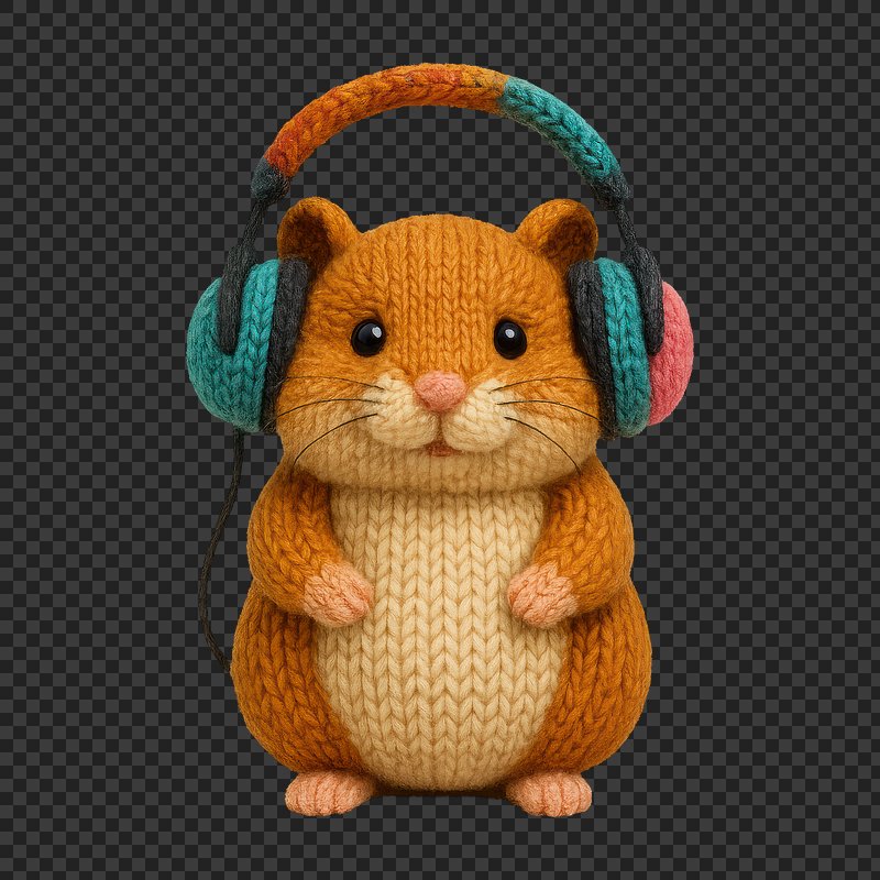 PNG Cute knitted hamster wearing headphones. https://www.rawpixel.com/image/24475083/png-cute-knitted-hamster-wearing-headphonesView license