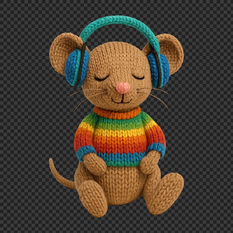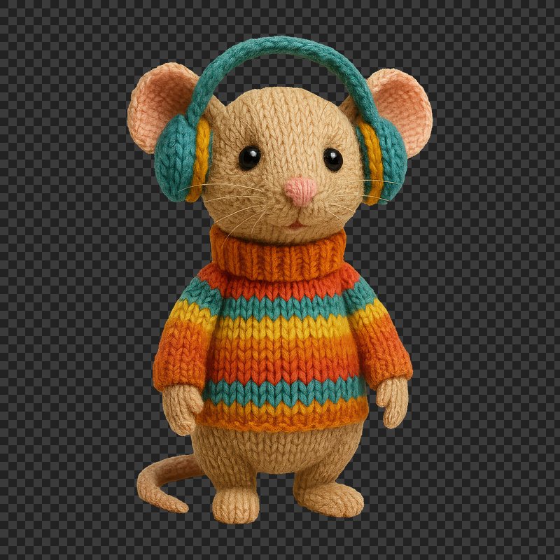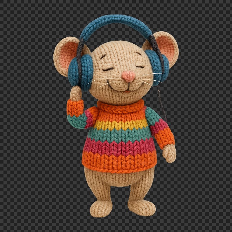 PNG Cute knitted mouse listening music. https://www.rawpixel.com/image/24474212/png-cute-knitted-mouse-listening-musicView license