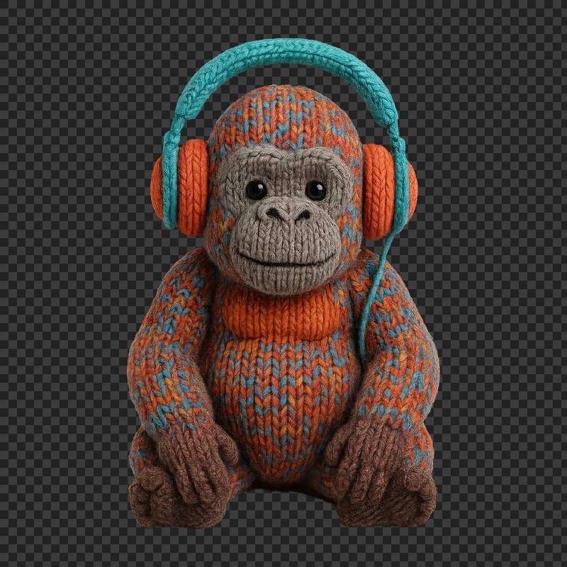 PNG Knitted monkey wearing colorful headphones. https://www.rawpixel.com/image/24478561/png-knitted-monkey-wearing-colorful-headphonesView license