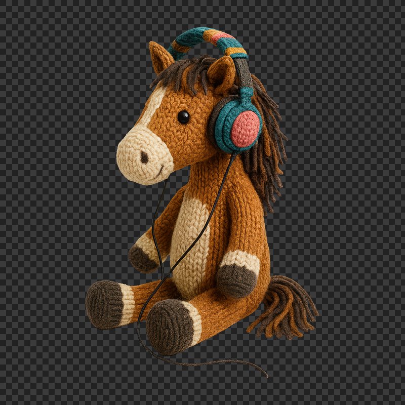 PNG Knitted horse wearing headphones. https://www.rawpixel.com/image/24478103/png-knitted-horse-wearing-headphonesView license