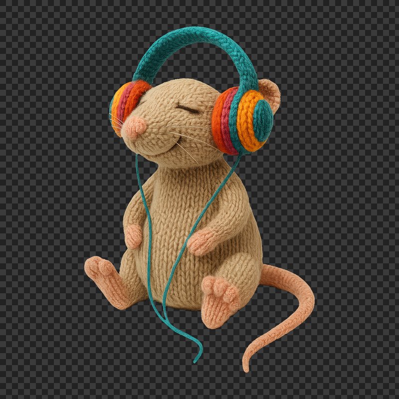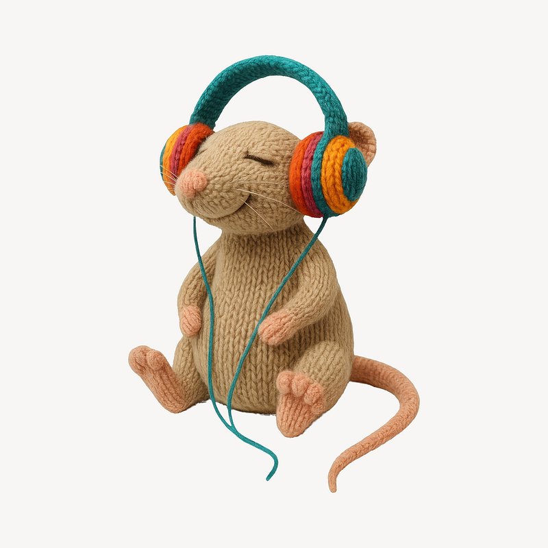 Knitted mouse enjoying music. https://www.rawpixel.com/image/24605556/knitted-mouse-enjoying-musicView license