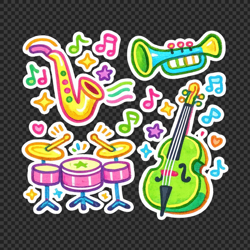 PNG Colorful musical instruments illustration. https://www.rawpixel.com/image/24447251/png-colorful-musical-instruments-illustrationView license