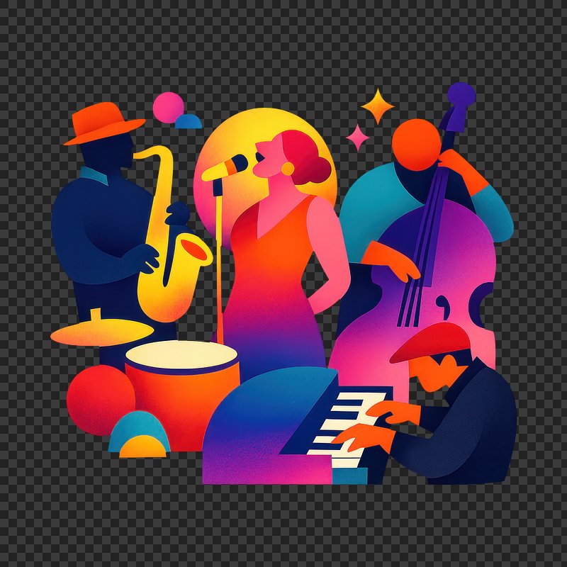 PNG Vibrant jazz band illustration https://www.rawpixel.com/image/25724506/png-vibrant-jazz-band-illustrationView license