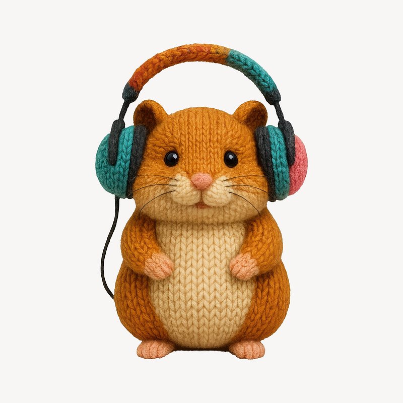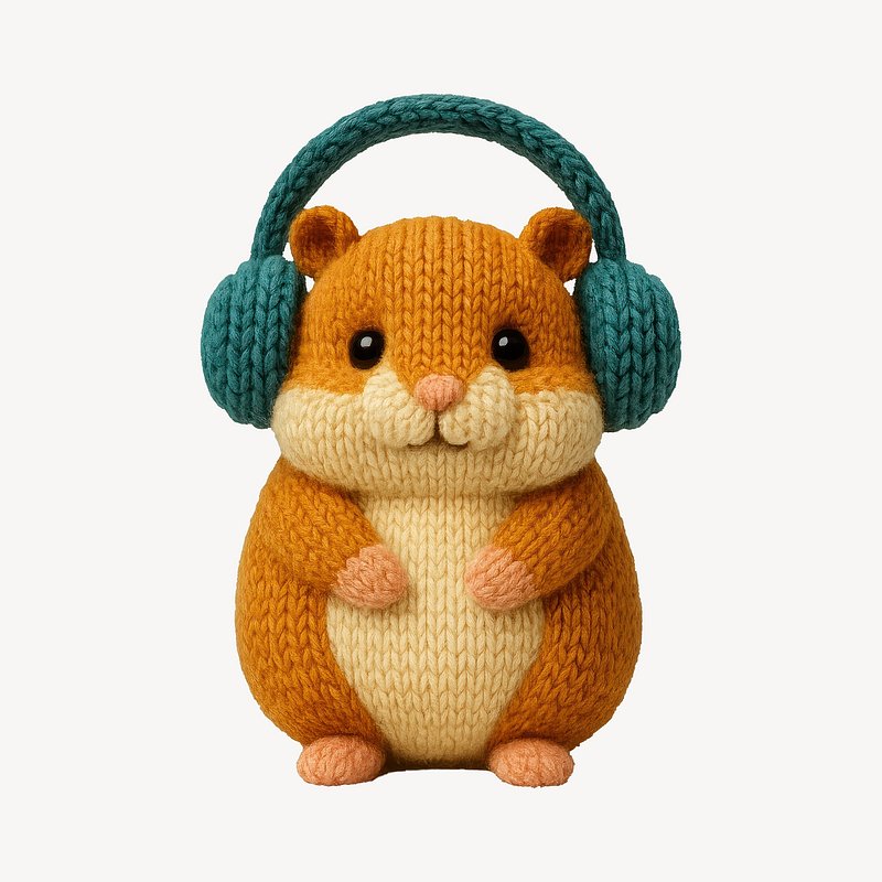 Cute knitted hamster wearing headphones. https://www.rawpixel.com/image/24661726/cute-knitted-hamster-wearing-headphonesView license