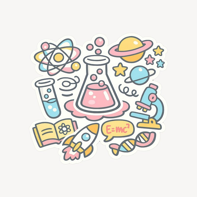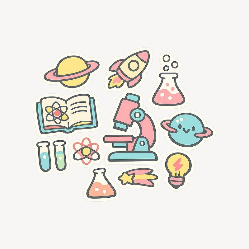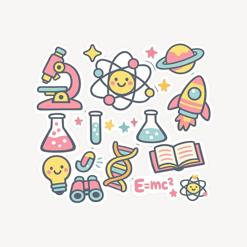 Colorful science-themed sticker set. https://www.rawpixel.com/image/25088636/colorful-science-themed-sticker-setView license