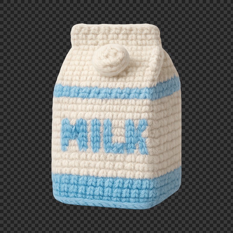 PNG Crocheted milk carton toy https://www.rawpixel.com/image/23002434/png-crocheted-milk-carton-toyView license