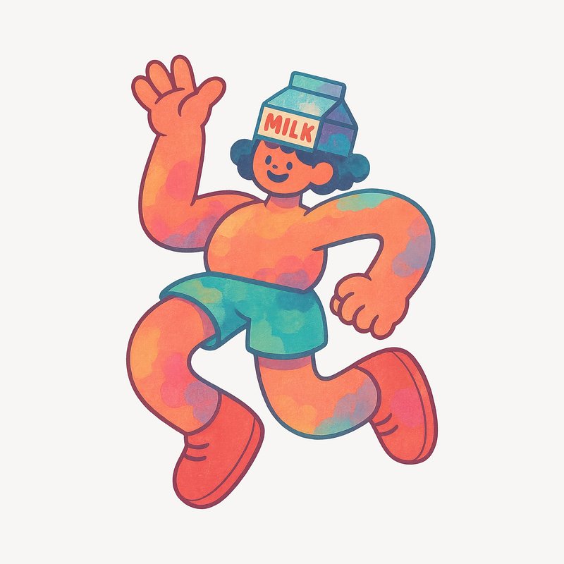 Playful dancing milk carton character. https://www.rawpixel.com/image/22385164/playful-dancing-milk-carton-characterView license