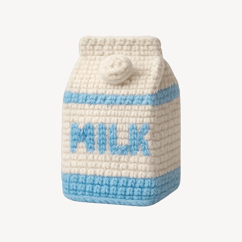 Crocheted milk carton toy https://www.rawpixel.com/image/23106199/crocheted-milk-carton-toyView license