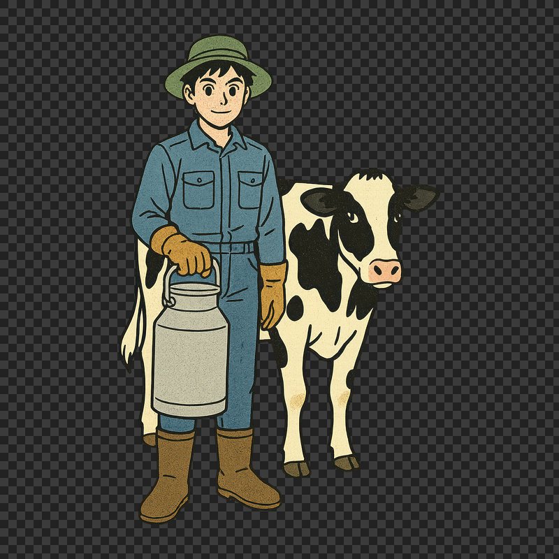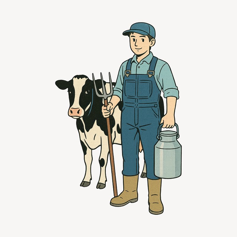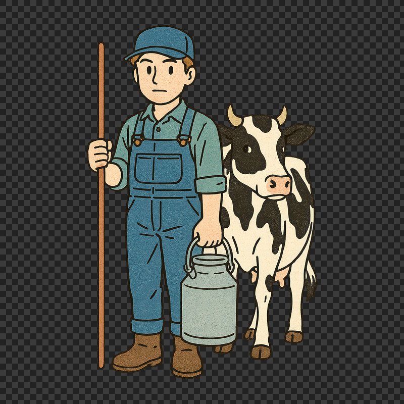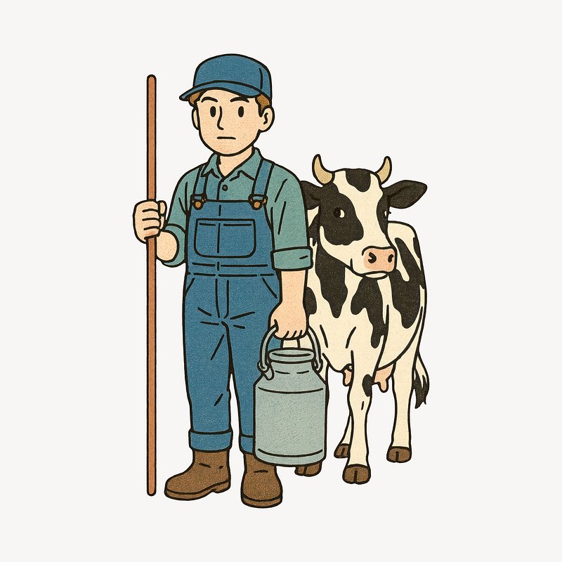 Cartoon farmer with dairy cow. https://www.rawpixel.com/image/24717472/cartoon-farmer-with-dairy-cowView license