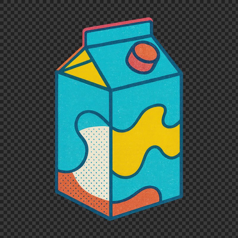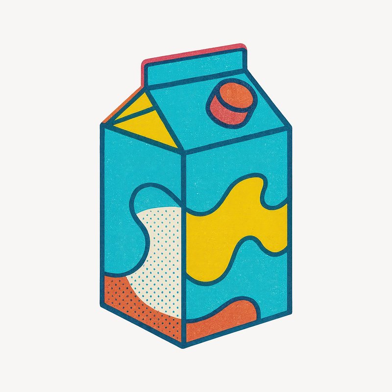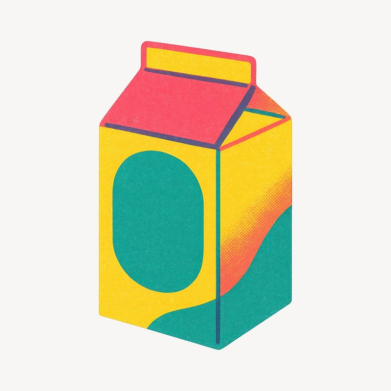 Colorful retro milk carton illustration. https://www.rawpixel.com/image/22339800/colorful-retro-milk-carton-illustrationView license
