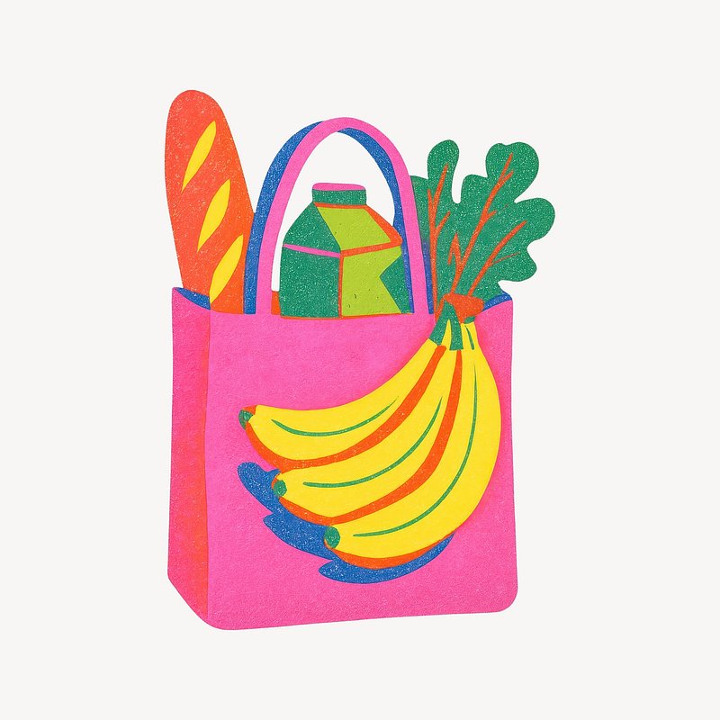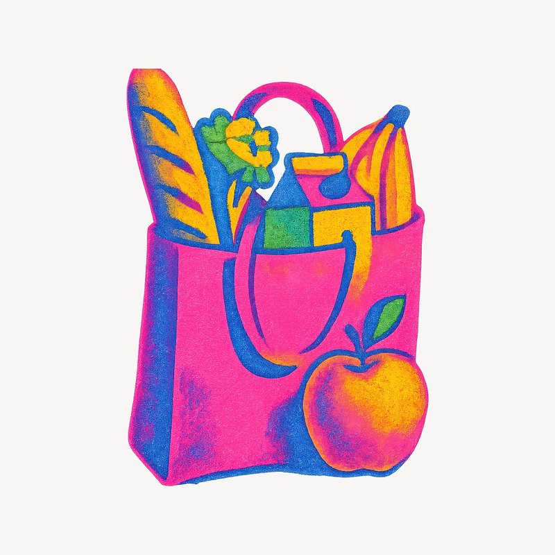 Colorful grocery bag illustration https://www.rawpixel.com/image/21352532/colorful-grocery-bag-illustrationView license