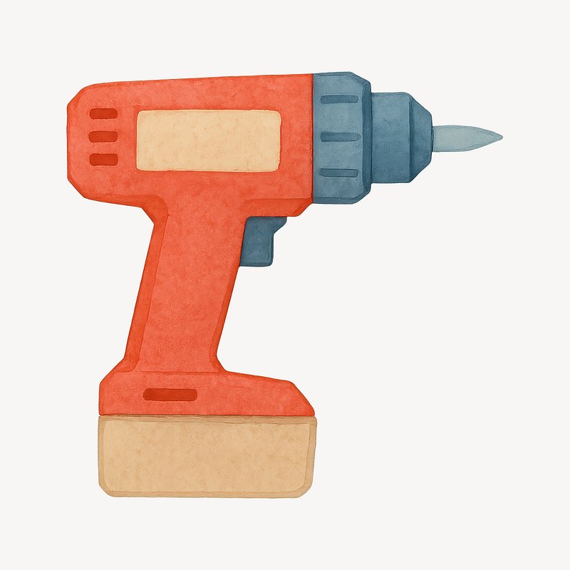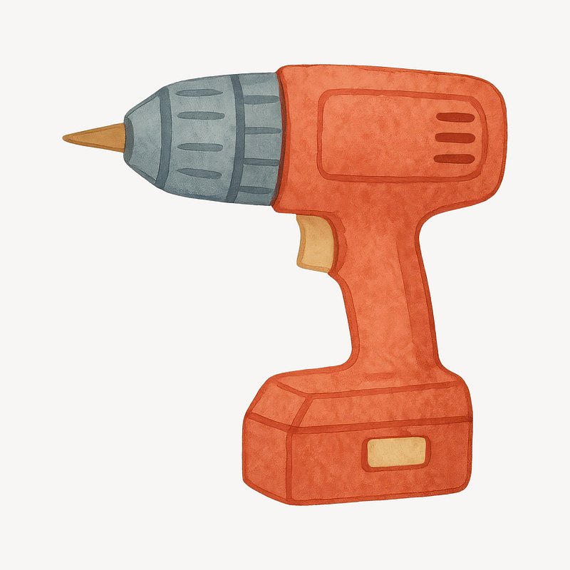 Watercolor cordless drill illustration. https://www.rawpixel.com/image/19310985/watercolor-cordless-drill-illustrationView license