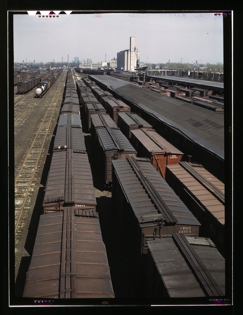General view of part of the Galewood yard of the Chicago, Milwaukee, St. Paul and Pacific Railroad, Chicago, Ill. https://www.rawpixel.com/image/7504938/photo-image-vintage-world-war-public-domainFree Image from public domain license