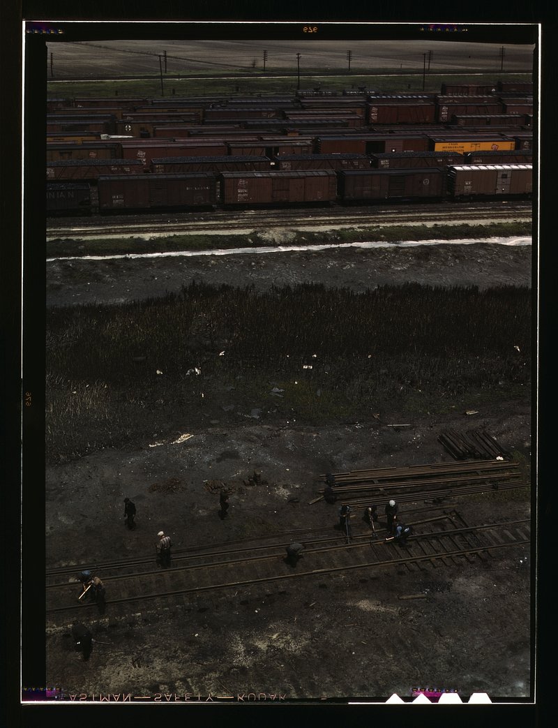 Track repair work at the Bensenville yard of the Chicago, Milwaukee, St. Paul, and Pacific Railroad, Bensenville, Ill. Track… https://www.rawpixel.com/image/7506647/photo-image-smoke-vintage-world-warFree Image from public domain license