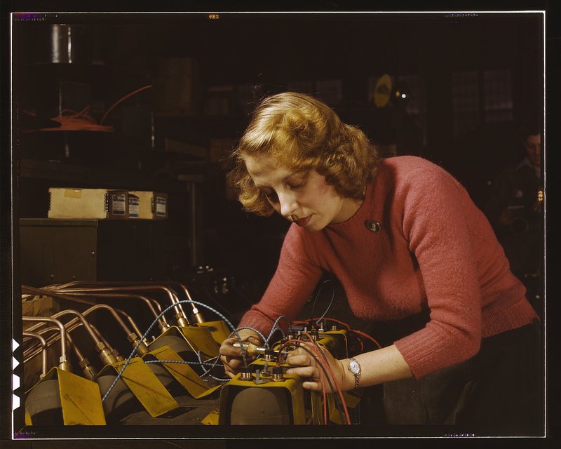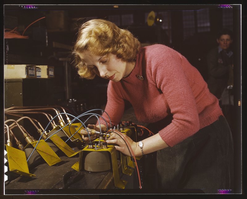 Lucile Mazurek, age 29, ex-housewife, husband going into the service, working on black-out lamps to be used on the gasoline… https://www.rawpixel.com/image/7504073/photo-image-face-person-blackFree Image from public domain license