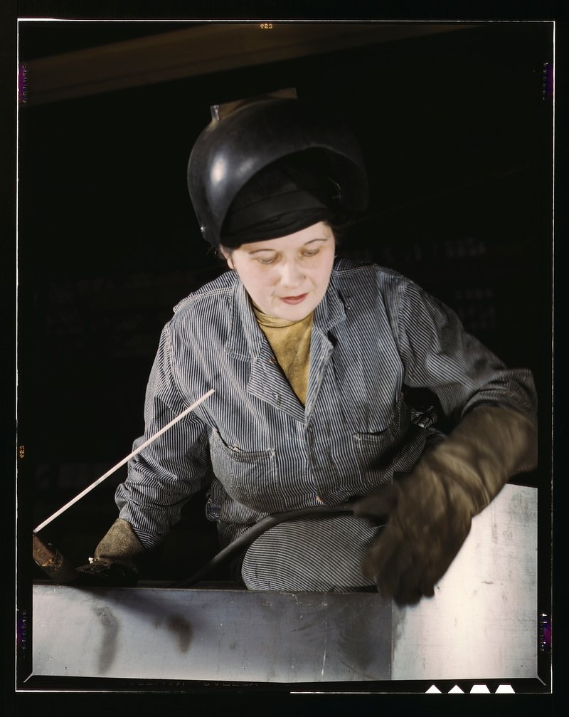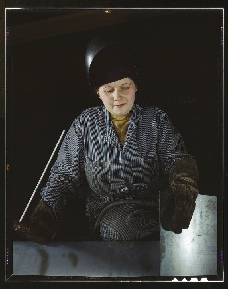 Enola O'Connell, age 32, widow and mother of one child, ex-housewife, now only woman welder at Heil and Co., Milwaukee, Wisc. https://www.rawpixel.com/image/7502173/photo-image-face-people-manFree Image from public domain license