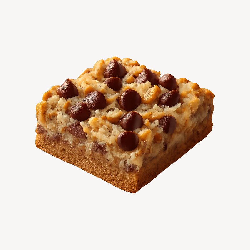 PNG Delicious chocolate chip blondie dessert. https://www.rawpixel.com/image/19069364/png-delicious-chocolate-chip-blondie-dessertView license