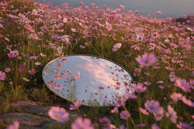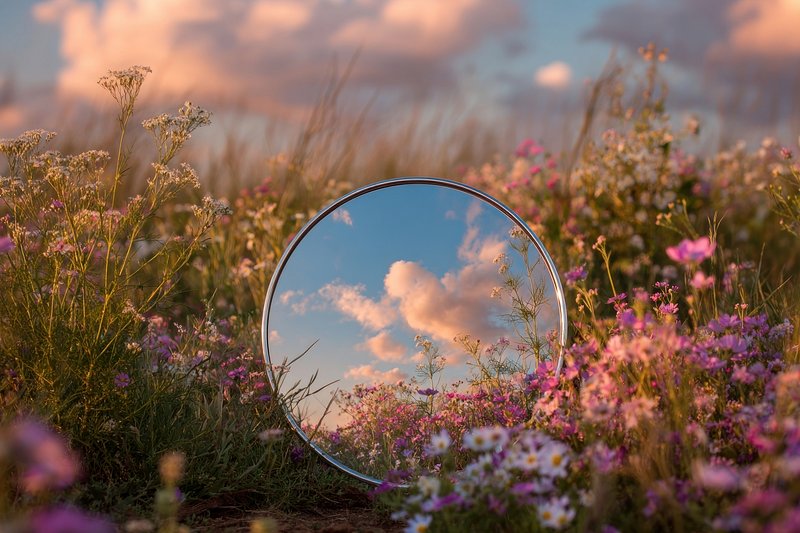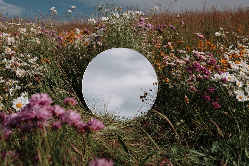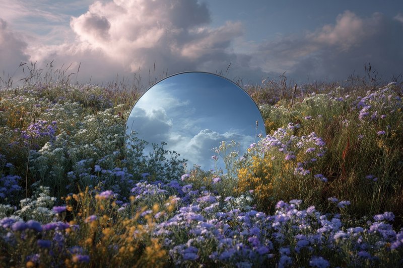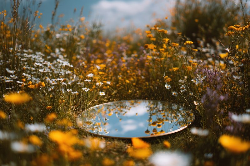 Mirror reflecting sky amidst flowers. https://www.rawpixel.com/image/25471334/mirror-reflecting-sky-amidst-flowersView license
