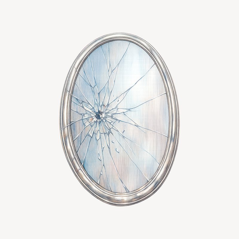 Oval mirror with shattered glass. https://www.rawpixel.com/image/25308495/oval-mirror-with-shattered-glassView license