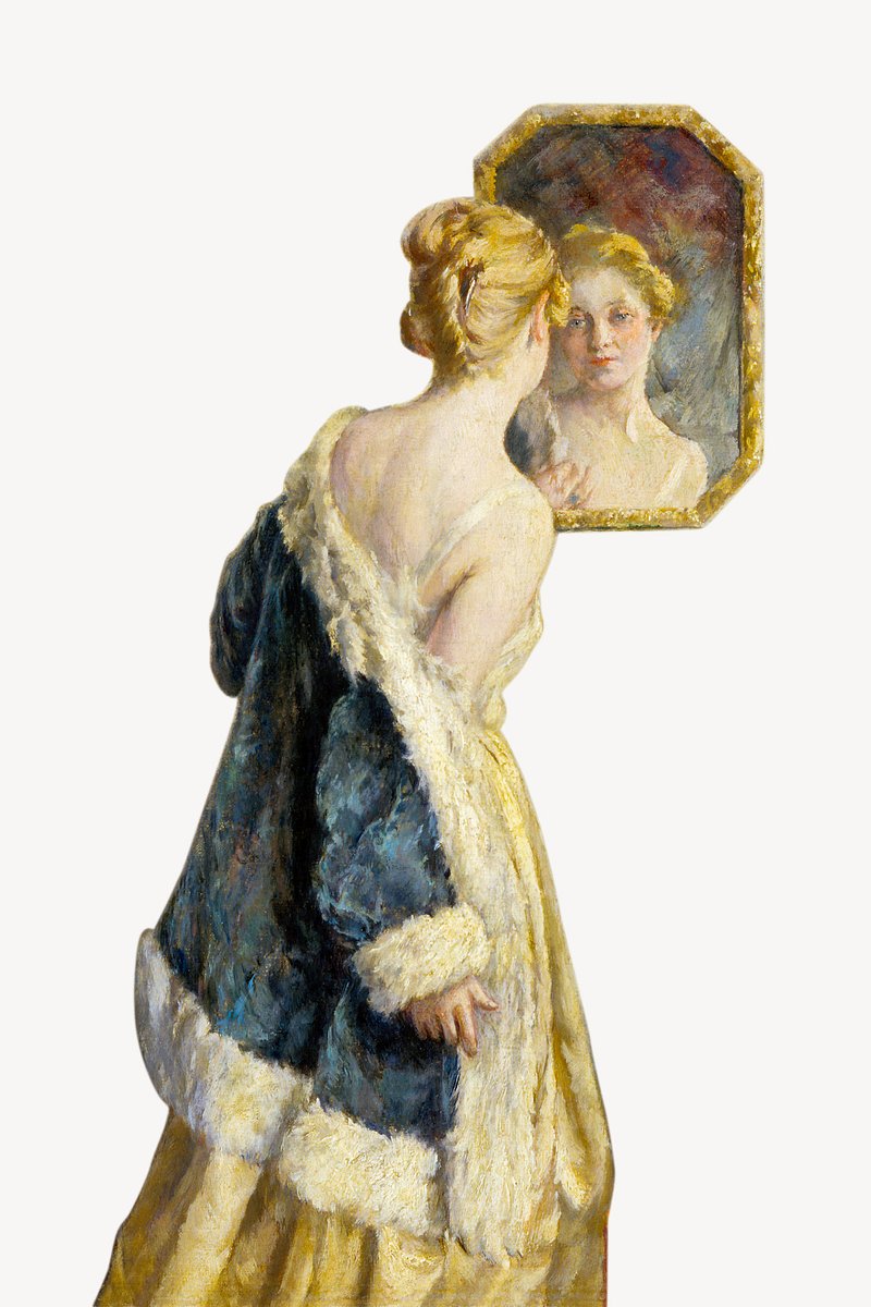 PNG A Girl Looking in a Mirror (after 1890) by Walter McEwen, vintage illustration on transparent background. Remixed by… https://www.rawpixel.com/image/25369128/png-face-stickerView license