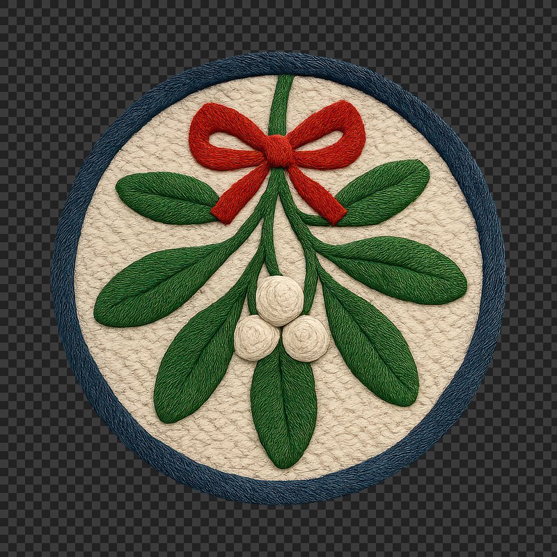 PNG Festive embroidered mistletoe illustration. https://www.rawpixel.com/image/24211362/png-festive-embroidered-mistletoe-illustrationView license