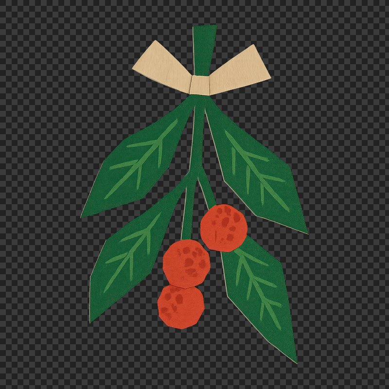 PNG Christmas mistletoe cherry plant leaf. https://www.rawpixel.com/image/12758143/png-christmas-mistletoe-cherry-plant-leaf-generated-image-rawpixelView license