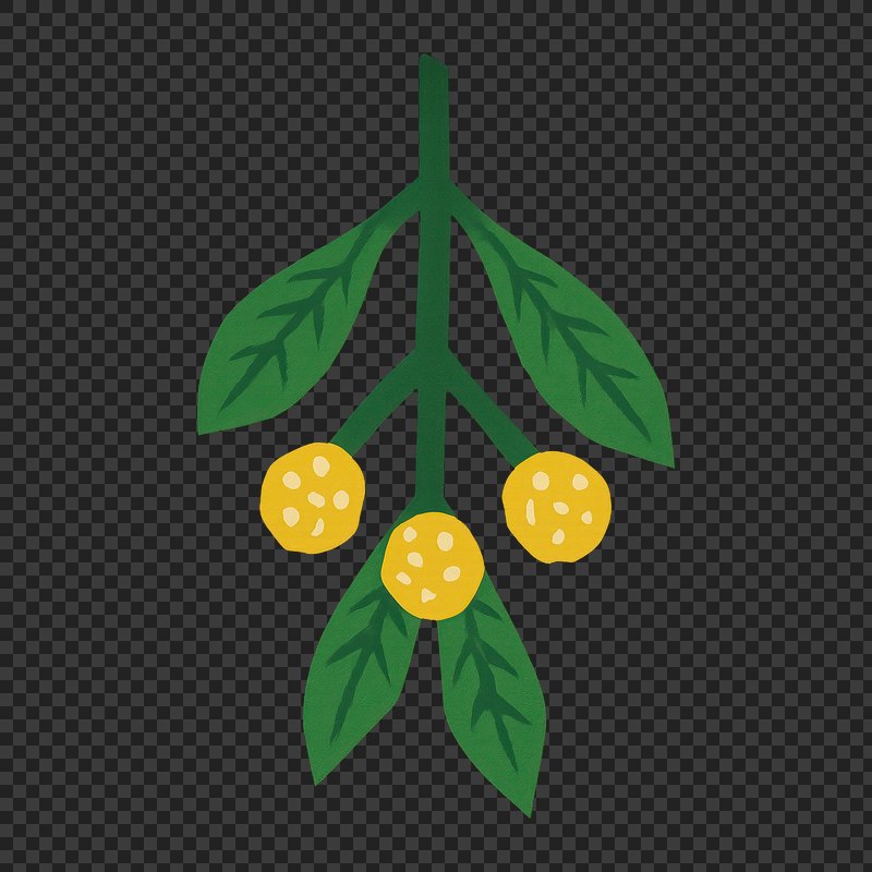 PNG Vibrant mistletoe with yellow berries. https://www.rawpixel.com/image/24613855/png-vibrant-mistletoe-with-yellow-berriesView license