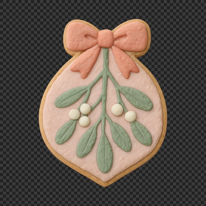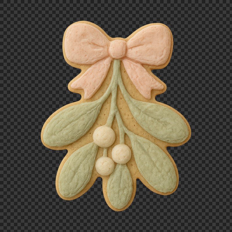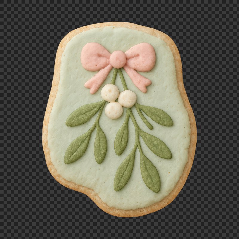 PNG Festive cookie with mistletoe design. https://www.rawpixel.com/image/24666889/png-festive-cookie-with-mistletoe-designView license