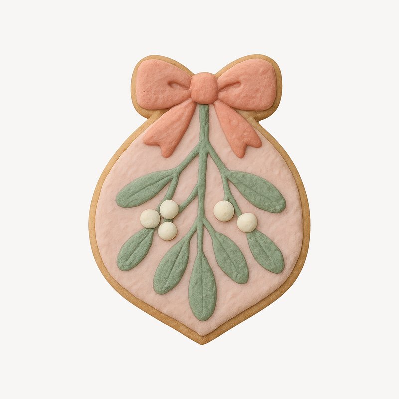 Festive cookie with mistletoe design. https://www.rawpixel.com/image/24775235/festive-cookie-with-mistletoe-designView license