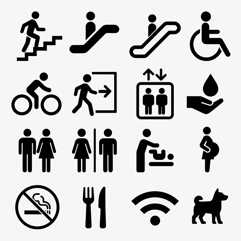 Universal icons for public spaces illustration vector set https://www.rawpixel.com/image/25693977/universal-icons-for-public-spaces-illustration-vector-setView license
