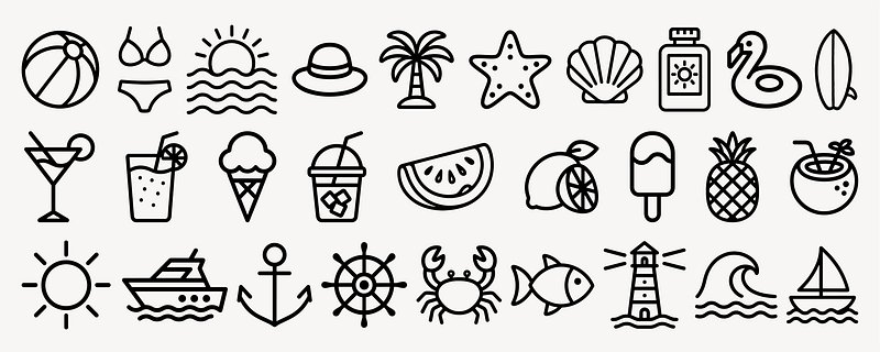 Summer icons beach vacation fun vector set https://www.rawpixel.com/image/25714148/summer-icons-beach-vacation-fun-vector-setView license