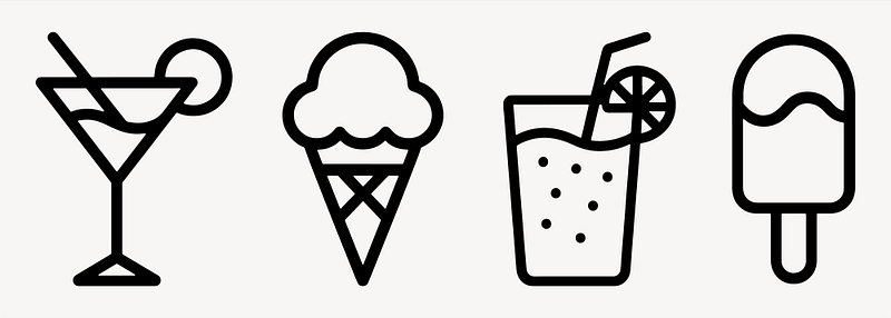 Minimalist icons of refreshing treats vector set https://www.rawpixel.com/image/25714045/minimalist-icons-refreshing-treats-vector-setView license