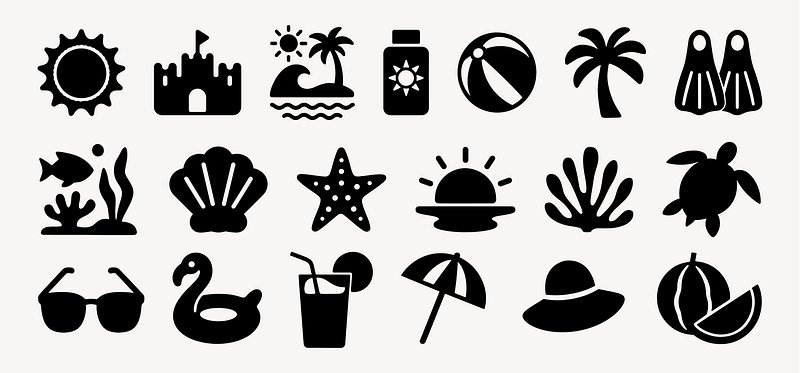 Summer icons in black silhouette vector set https://www.rawpixel.com/image/25714136/summer-icons-black-silhouette-vector-setView license