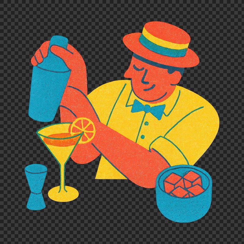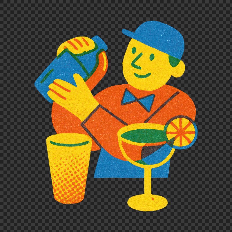 PNG Colorful bartender mixing cocktail illustration. https://www.rawpixel.com/image/21807555/png-colorful-bartender-mixing-cocktail-illustrationView license