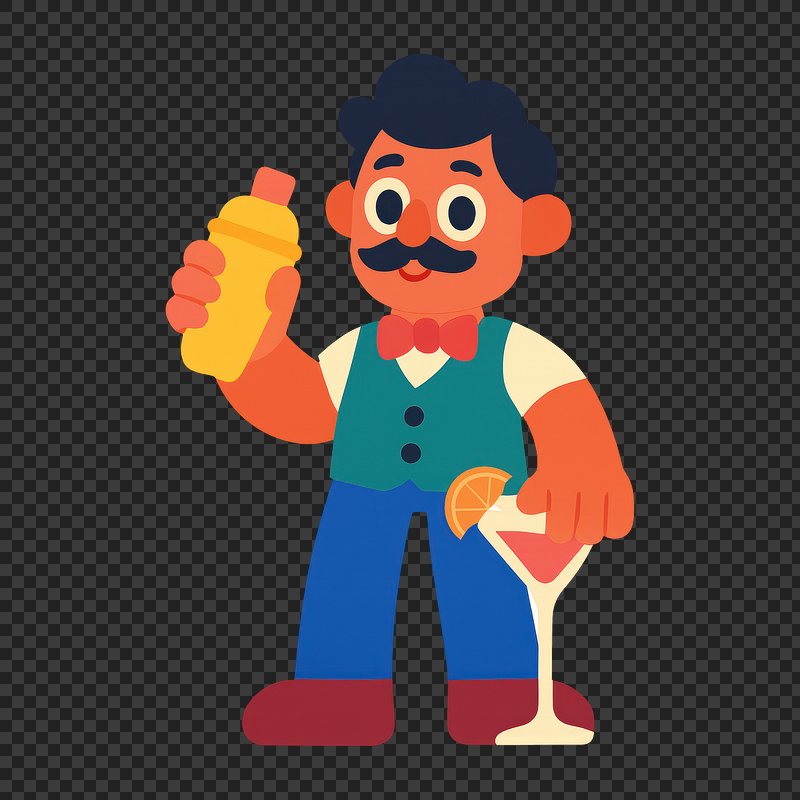 PNG Cartoon bartender mixing cocktail. https://www.rawpixel.com/image/21907935/png-cartoon-bartender-mixing-cocktailView license
