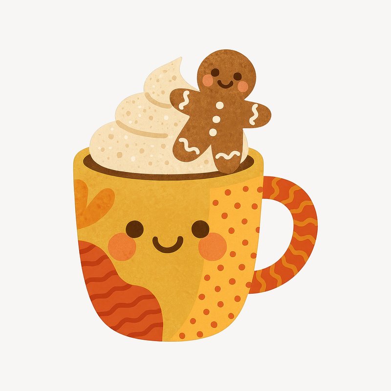 Cute gingerbread hot chocolate illustration. https://www.rawpixel.com/image/23110683/cute-gingerbread-hot-chocolate-illustrationView license