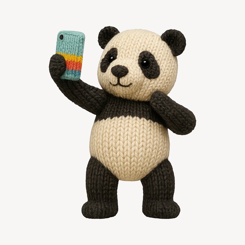 Knitted panda taking selfie. https://www.rawpixel.com/image/24658557/knitted-panda-taking-selfieView license