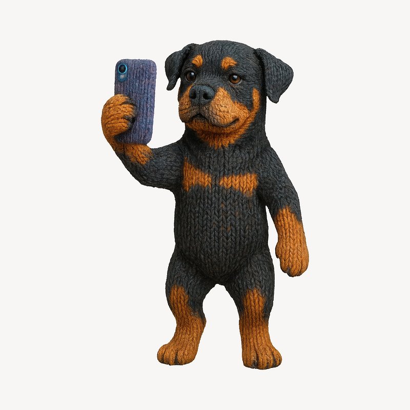 Knitted dog taking selfie. https://www.rawpixel.com/image/24604667/knitted-dog-taking-selfieView license