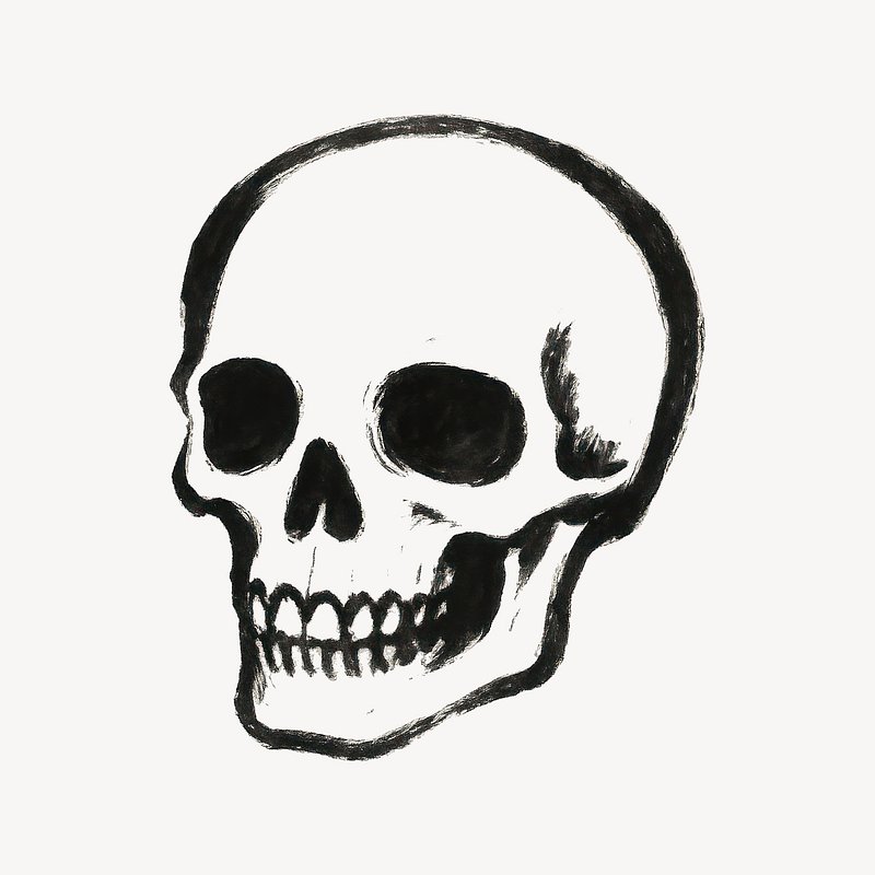 Monochrome skull illustration art. https://www.rawpixel.com/image/24788363/monochrome-skull-illustration-artView license
